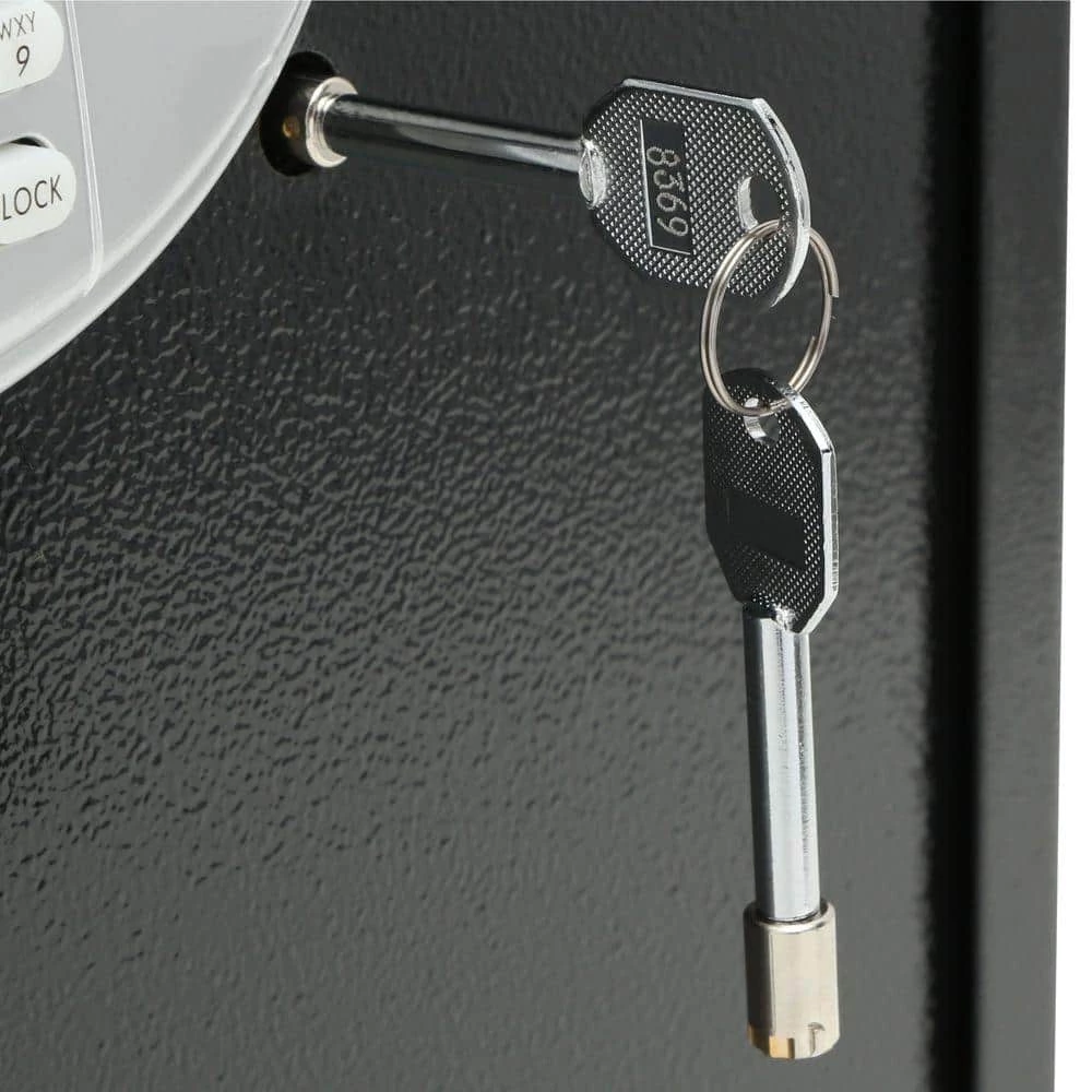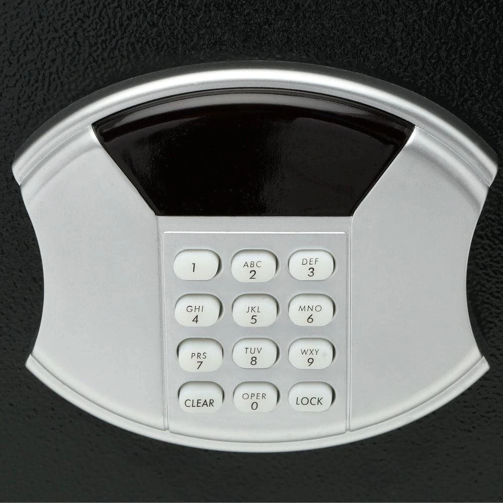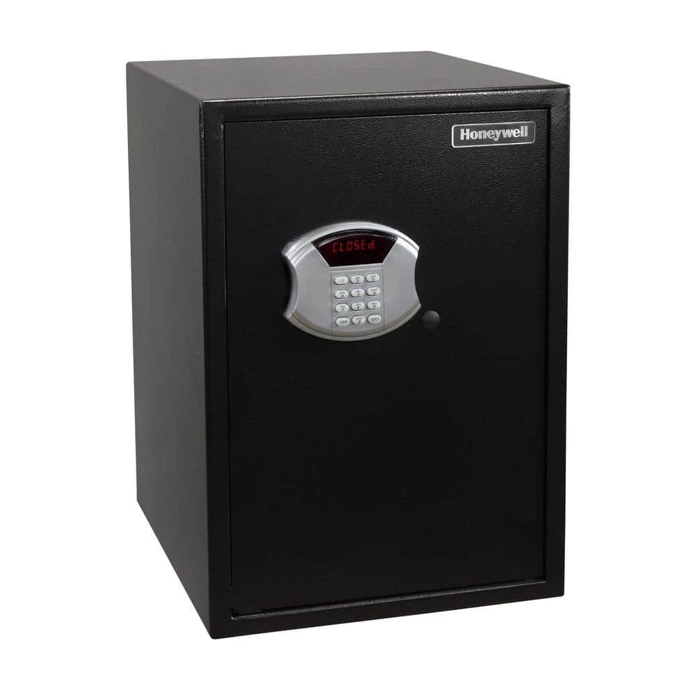 This Honeywell 5107 Steel Security Safe features a 2.87 cu. ft. interior storage capacity, programmable hotel-style digital entry, emergency override key access, 2 solid steel live Lock bolts, LED display panel, concealed hinges, recessed door, flat bottom entryway and rear panel to prevent prying which gives you additional protection against theft. This safe has a scratch resistant powder coat finish. The Honeywell safe product line provides safety and security for your essential documents and most valuable possessions while affording you the peace of mind that comes from being prepared in the event of a disaster, fire or an invasion of your home or office. The Honeywell 5107 includes emergency override access keys, mounting kit which there is pre drilled holes for your convenience, 1 removable shelf for additional storage. Backed by a 7-year limited warranty.