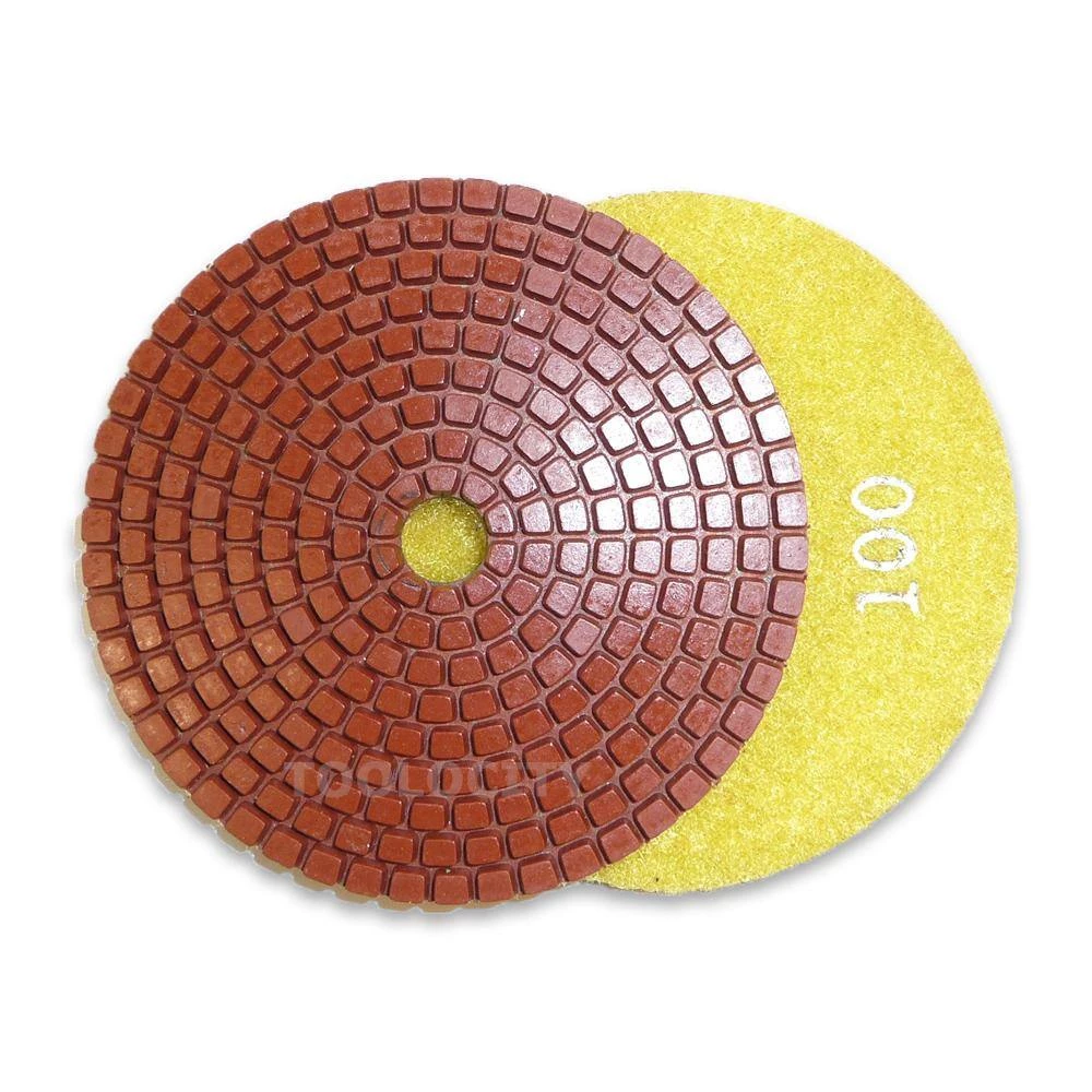- Full set of 7 pads (50-grit, 100-grit, 200-grit, 400-grit, 800-grit, 1500-grit and 3000-grit) and a 4 in. semi rigid back holder with 5/8-11 thread