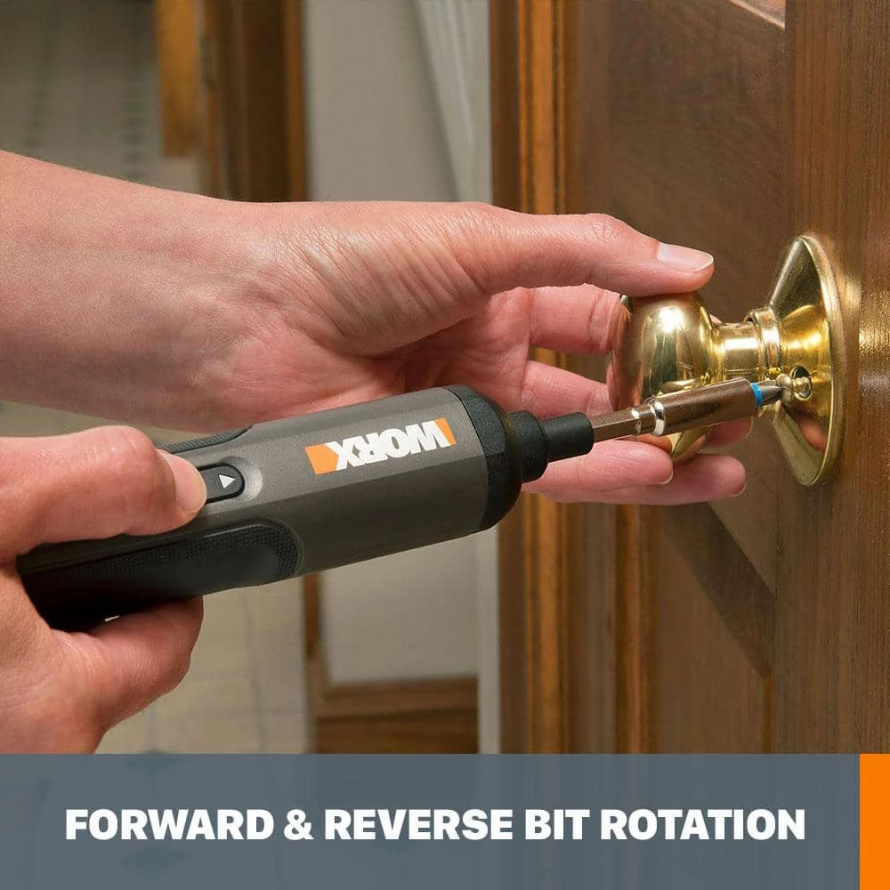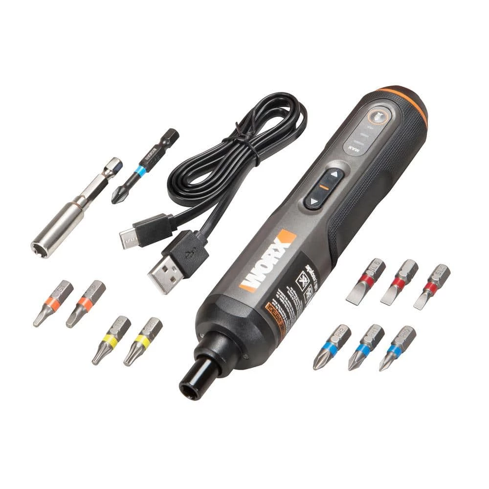 The most important tool in your collection is your hands, and to make sure they continue to operate at peak efficiency well into their life cycle, you should start using an automatic screwdriver. The powerful 4V Screwdriver from Worx provides 300 rpm of no-load speed for a max hard torque of 44 in-lbs, and a max soft torque of 22 in-lbs. Yet, this tool is only 1.5 lbs itself, feels great in the hands, and is easy to hold from multiple angles and in varied positions to get at tough to reach fasteners. Getting a manual screwdriver into a tight space isn’t usually the problem, but generating enough torque once you get it in there usually is. With this Worx automatic screwdriver, all you have to do to generate max torque is hold down a button. The 4V motor is as powerful as some drills, and you’ll get about 45 minutes of no-load working time on a single charge. But because you’re likely to use this tool in short bursts, it will effectively last much longer than 45 minutes. Plus, it charges back up in only an hour and a half. This model comes with a box full of bits. That’s the other advantage of auto screwdrivers: you just need one and a few bits, instead of a dozen separate tools. This tool is covered by a 3-year limited warranty because we’re confident in the longterm performance of our tools. Take a step to improving the longterm performance of your hands with the 4V Screwdriver from Worx. You’ll notice the benefits immediately and still feel them well down the road.