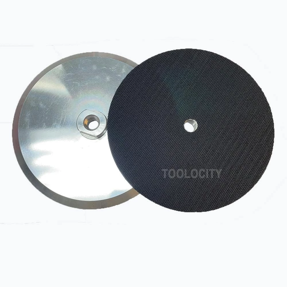 Toolocity aluminum back holder with velcro is to be used with variable speed grinders and polishers for polishing operations. Aluminum build is rigid, durable and light weight. Velcro back is for polishing pads and sand paper with velcro back to provide easy and quick changing.