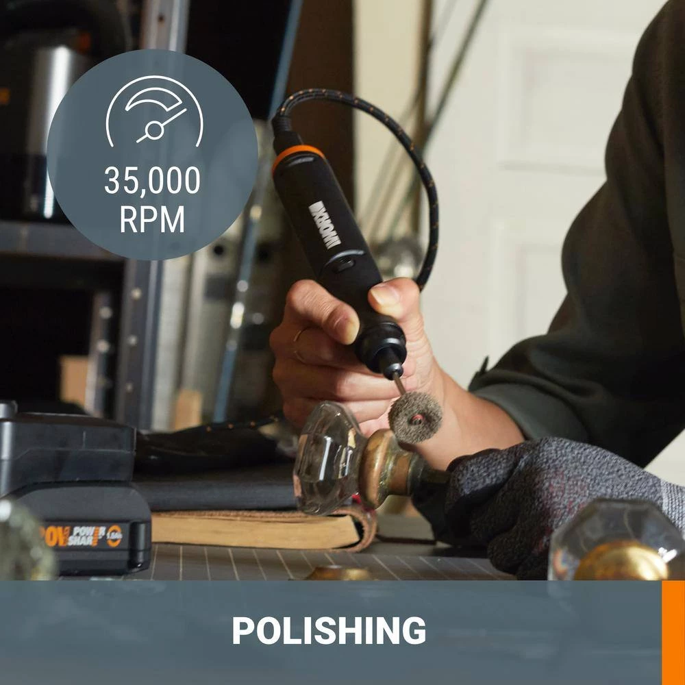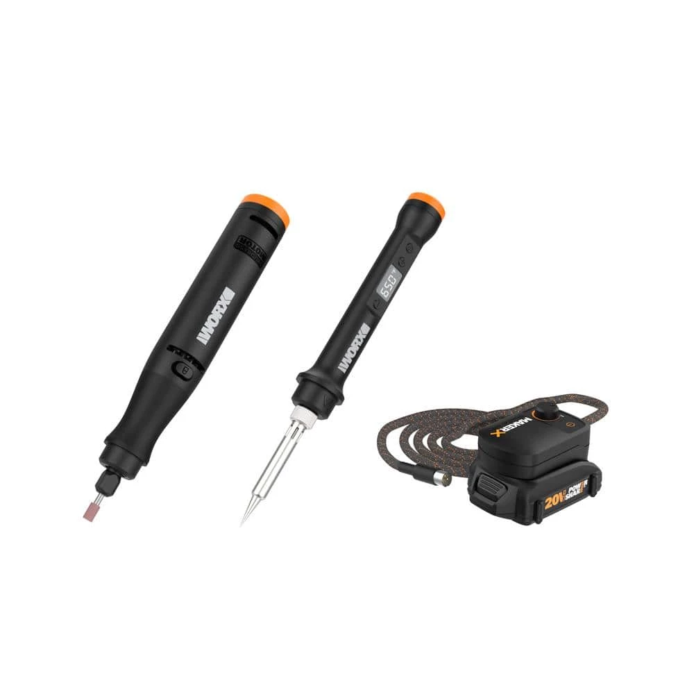 Small by design, still-packed with power. The Worx MAKERX Rotary Tool with Brushless Motor fits nicely in your hand. And without an onboard battery-pack, it’s lighter, so you can work longer without feeling the fatigue in your arms or shoulders. Yet, with a brushless motor you still get more than enough power to engrave and etch, grind and sand, cut, polish, and clean. The variable speed control lets you pick just the right amount of juice for the job (5,000-35,000 rpm). And it’s fitted with the common collet size of 1/8 in. It can work with all standard collet sizes, so it accepts the bits and accessories of all the major brands. The Worx MAKERX Wood and Metal Crafter heats up to the temps of a larger, full-size pyrography and metal-working tools, but its skinny design means you can hold it like a pen and do finer work. The digital temperature control lets you precisely set the temp from 400°F – 900°F, so you get the heat you need depending on the task. MAKERX has created crafting and hobby tools that are smaller, but more powerful-the secret lies in the Hub. It’s a power source that you can take with your tool, so if you want to work in the middle of a large space, you can, and still have the power to get the job done. Thoughtful design allowed Worx engineers to make these tools slimmer, so you can hold them with more precision, and provide a level of detail to your projects that’s not possible with other tools.