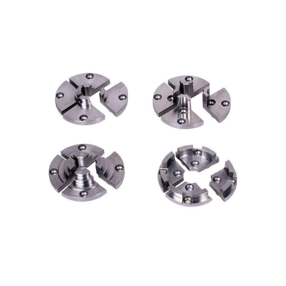 - Includes one each of the following: 20 mm mini jaws, 70 mm jaws, mini spigot jaws and mini step jaws