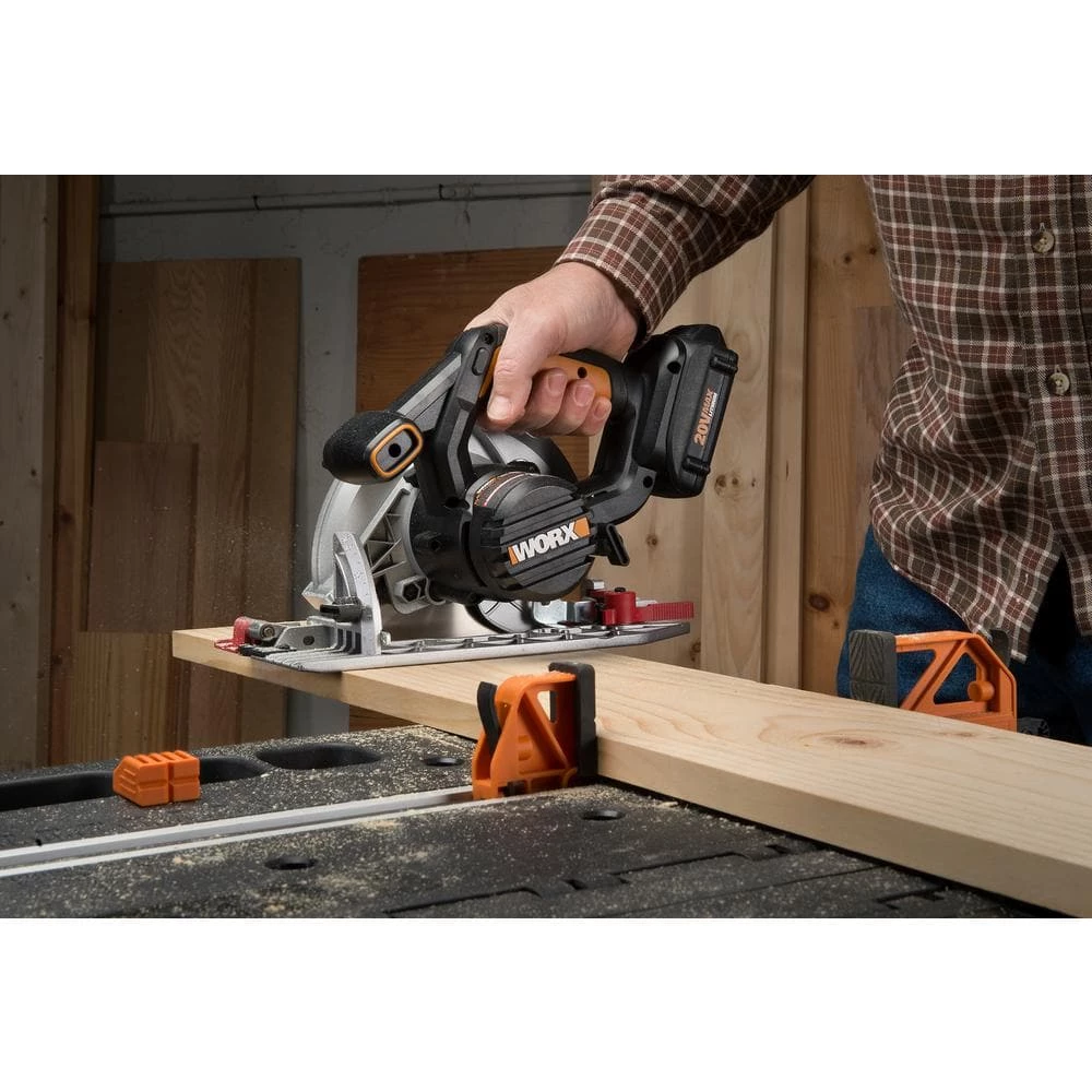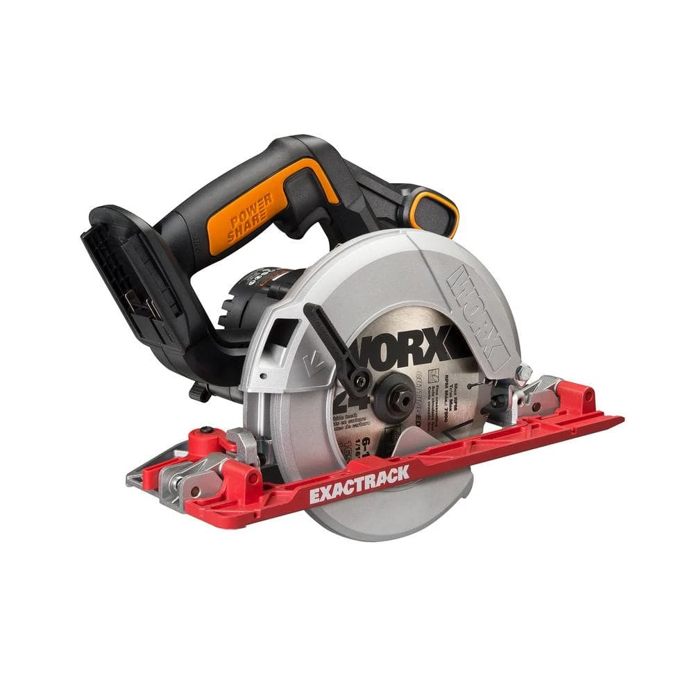 The 20-Volt ExacTrack is the first circular saw that makes straight cuts easy. Its split shoe design allows the 6-1/2 in. blade to sit flush again the track, giving you increased visibility and cutting accuracy. Lightweight yet powerful, ExacTrack delivers straight and steady cuts every time, while an easy-to-use bevel gauge also lets you cut to precise angles when your project demand it. Plus, it’s part of the 20-Volt Power Share platform that lets you share batteries between all of our Worx 20-Volt tools, saving time and money.