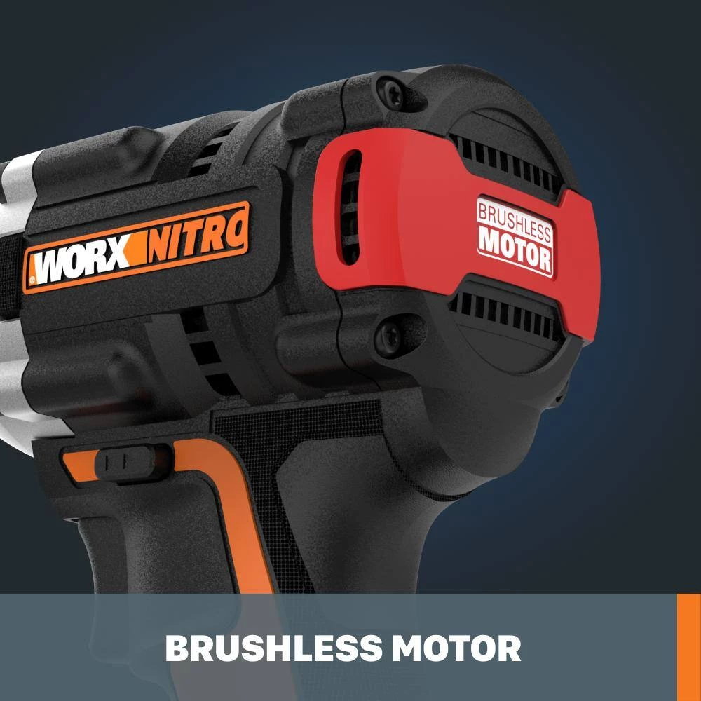 Brushless motors are more efficient, more durable, and last longer than motors based on a brush design, so when we made our 3-speed Impact Driver we weren’t going to settle for anything but a Brushless Motor. It provides an impressive 2000 in./lbs. of torque, yet in a compact and lightweight form factor. So you can take all that power in tighter places than other drills can go. Then we-packed its gearing in a solid aluminum housing, which will extend the life of this tool. It’s-packed with modern features, like an LED fuel gauge to let you know exactly how much battery you have at any given moment. And the LED headlight activates when you pull the trigger, and stays lit 20-seconds after you let the trigger go, so you can see what you’re driving in dark spaces. The 3-speed settings let you pick the right amount of spin for the job at hand. It comes with a #2 Phillips screwdriving bit, carry bag, belt hook, 1-hour charger and a 20-Volt 2.0 Ah Powershare battery that you can use with any tool on the Worx Powershare platform. Power, performance, durability, full of features, and at only 3.2 lbs. its compact enough to get into narrow spaces, with a Brushless Motor that won’t quit. The 20-Volt Brushless 3-speed Impact Driver could be your next favorite tool.
