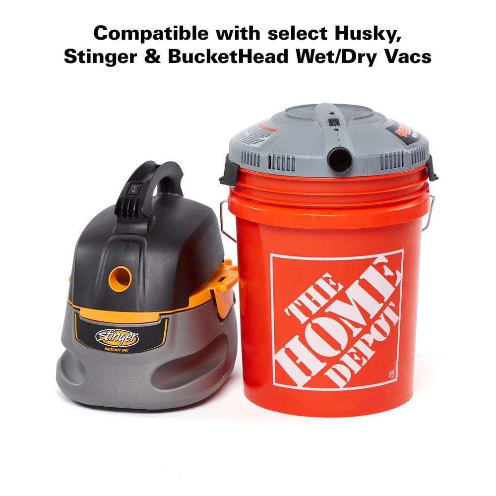 - Use on Husky, Bucket Head, and Stinger branded shop vacs (compatible model numbers include: HV0200, BH0100, WD2000, WD2010, WD2505, and HD2025)