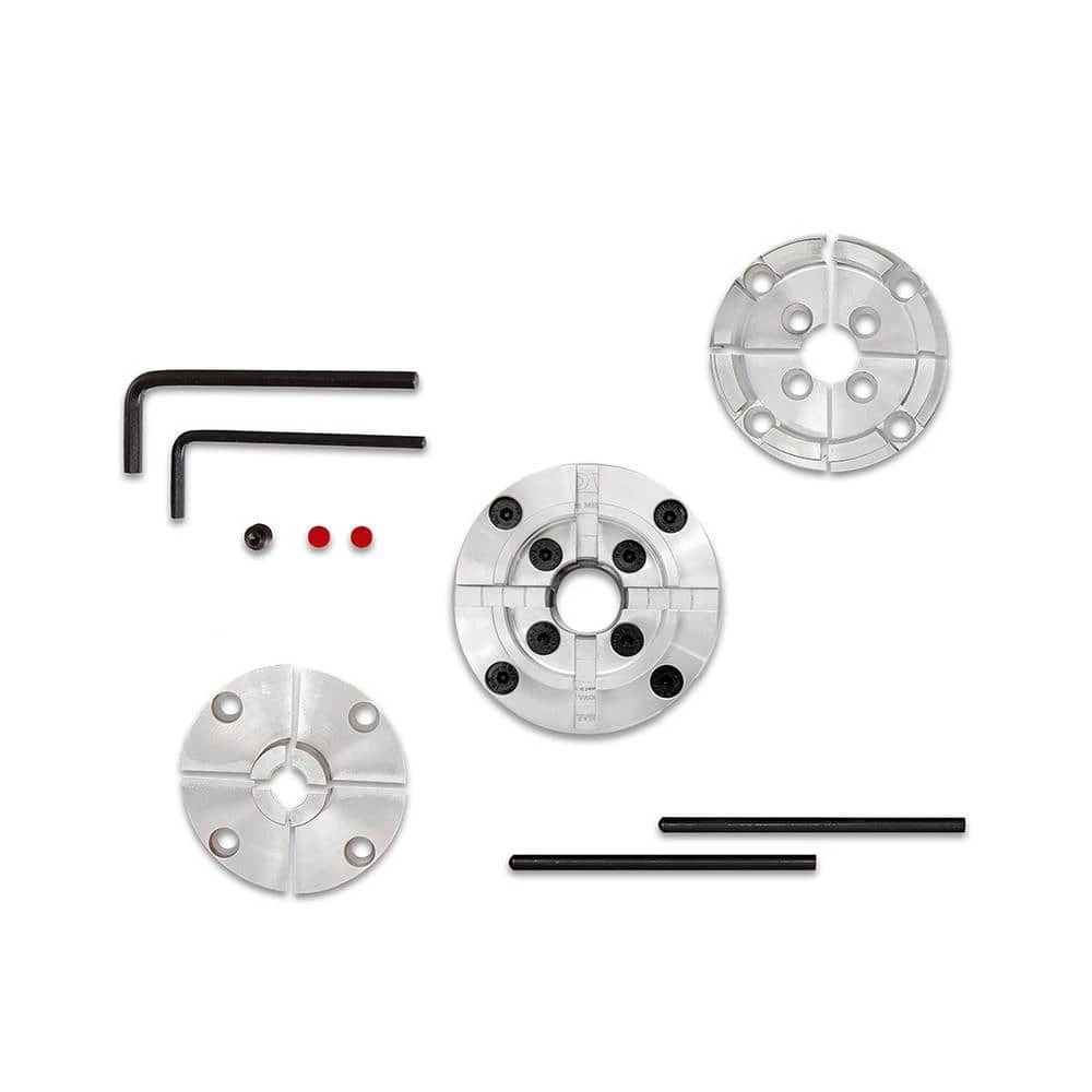 NOVA 48123 Precision Midi Select Wood Turning Chuck Bundle 1 in. 8TPI Direct Thead is a smaller 4 Jaw self centering chuck that minimizes loads on small lathe spindles and bearings, suitable for smaller Wood lathes with up to 12 in. swing. With unique NOVA features such as Auto Stop, Copper composite Jaw Slides, 2 in. 50 mm standard jaws, as well as 70 mm jaws included. This chuck is fully featured. The quick 2 handle operation makes it ideal for fast production turning of smaller pieces. Takes the same accessory range as other NOVA Chucks. Direct threaded 1 in. 8TPI RH.